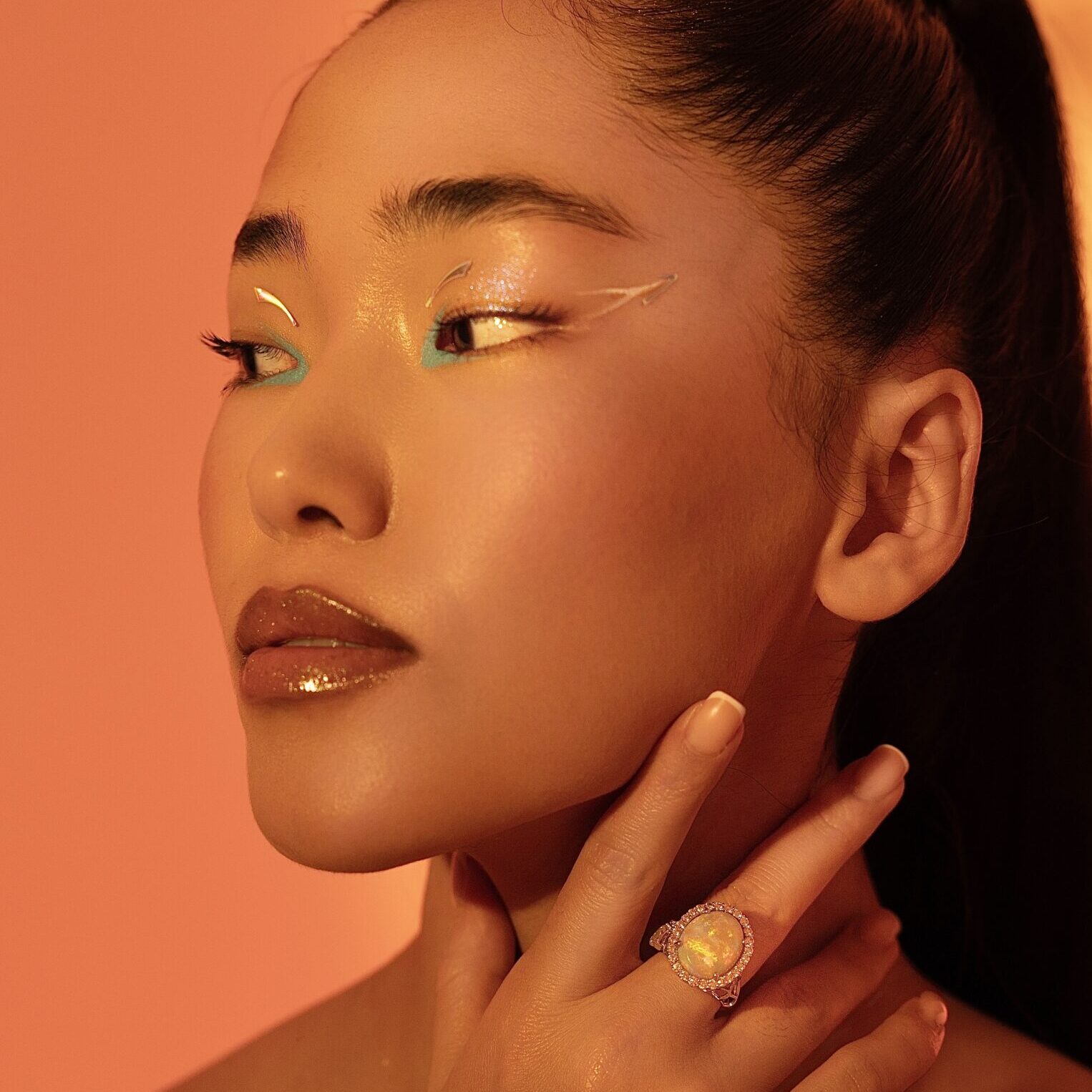 Handcrafted in 18k White Gold, Centered with 1 Oval Cut White Opal 9.86ct. from Australia, and Accented by 26 Brilliant Cut Diamonds 0.81ct. F-Vs., 1 Pear Cut Fancy Yellow Diamond 0.39ct. FY-VS2.