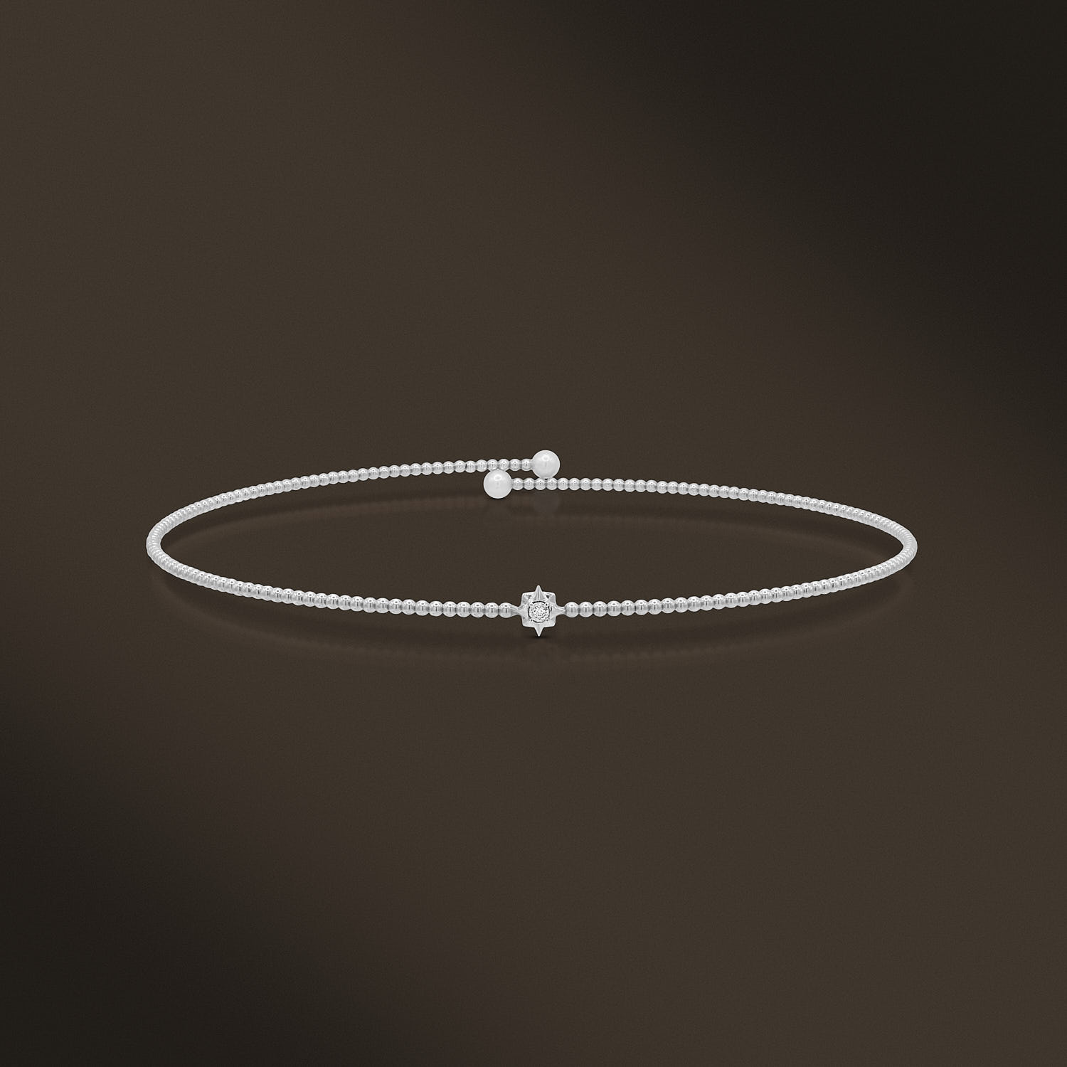 Description: Handcrafted in 18k White Gold, Centered with 1 Diamond 1.5mm 0.015ct G,H-SI2., and Accented by 2 Pearls 4.5mm. Item weight: 3.54g. Gold weight: 1.92g. One Size