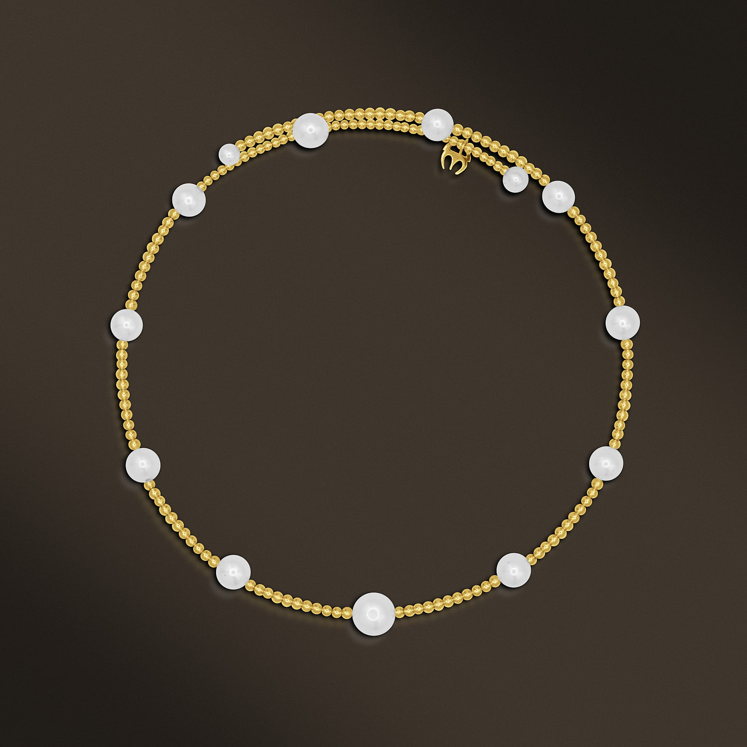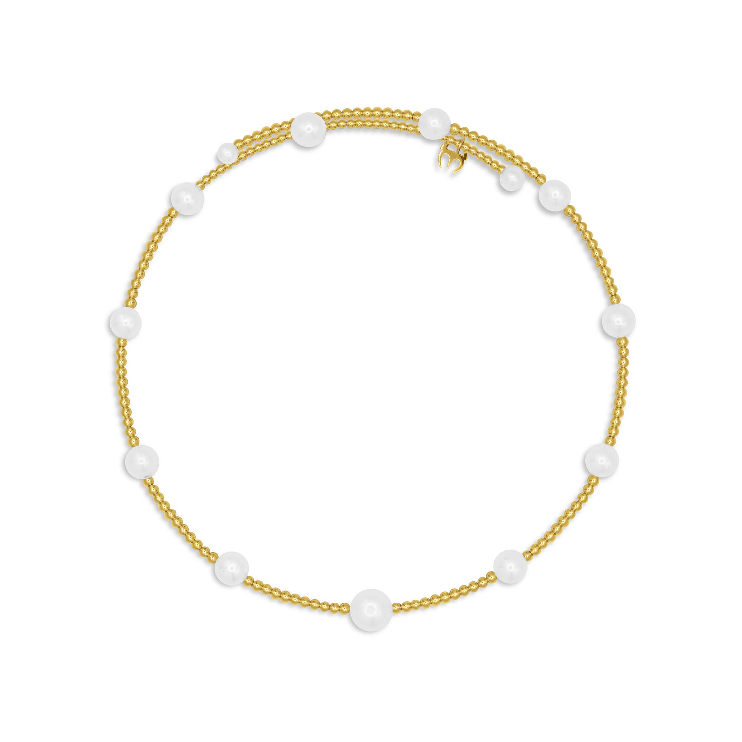 Description: Handcrafted in 18k Yellow Gold, Centred with 1 Pearl 9mm, and Accented by 10 Pearls 7-9mm. and 2 Pearls 5mm. Item weight: 11.35g. Gold weight: 1.98g. One Size.